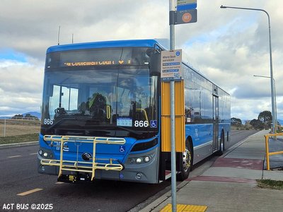 Bus 866 is a Yutong ZK6131HG1 battery electric bus based at Woden Depot