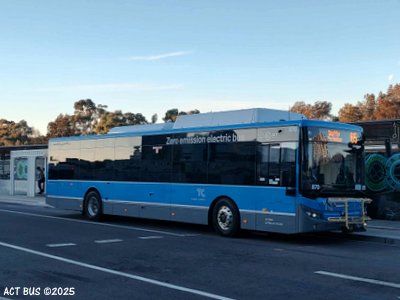 Bus 870 is a Yutong ZK6131HG1 battery electric bus based at Woden Depot