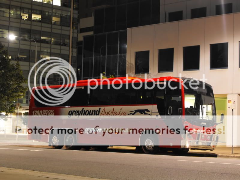 And finally, upon returning to Canberra, I took up the chance for some night photography, and here is Greyhound (SB-37-BS) Mills Tui bodied Scania K380IB (833) parked in the City.