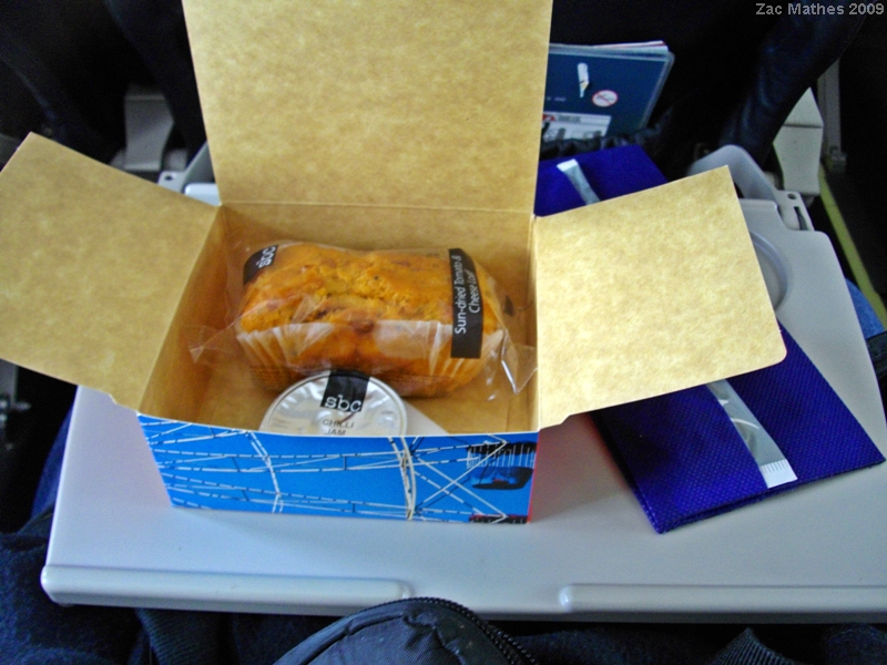 Indeed. The nice one is the Coconut loaf, goes well when heated up a little aswell. Any of the other loafs turn me off, though some snacks from the Carmans range are not too bad. The Corn Chip w/ salsa is good, along with the salty snack pack. On the longer flights with Virgin, you tend to want something abit more substantial. They have a few items on their menu, however they are generally not up to the same quality as the Qantas Hot Catering (Which is not the same quality as what Grandma cooks, that is if your Grandmother cooks well and it is not all liver and brains). On short flights, Virgin and JetStar are king.