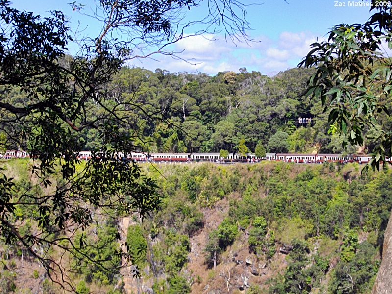A view across the gorge to the train