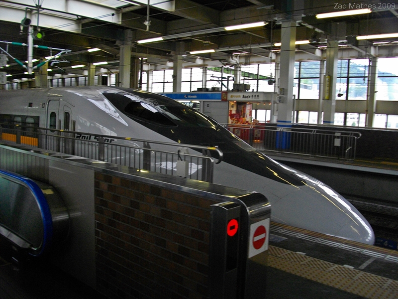 As we rushed off the platform I photographed the Hikari Railstar we had just gotten off departing Hiroshima. The railstar shinkansen is a JR700 with all Green Car seating (sort of like business class). They operate on the Shin-Osaka to Hakata line.