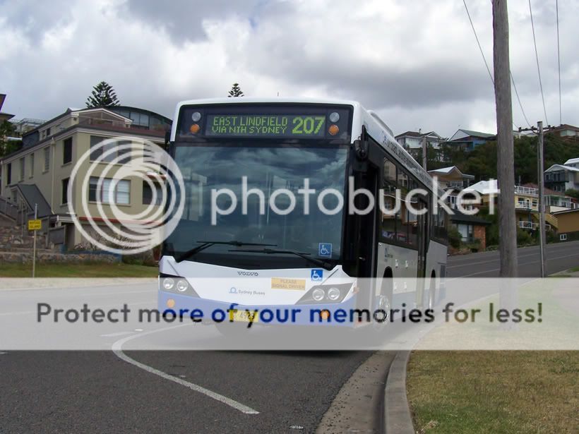Sydney's Burwood Depot temporarily loaned Volvo 4929 to Newcastle for driver training in mid 2007. It's seen here at the base of Scenic Drive, Merewether, on the former Route 207 (which ceased in 2002) displaying Sydney's Route 207 on the desto.