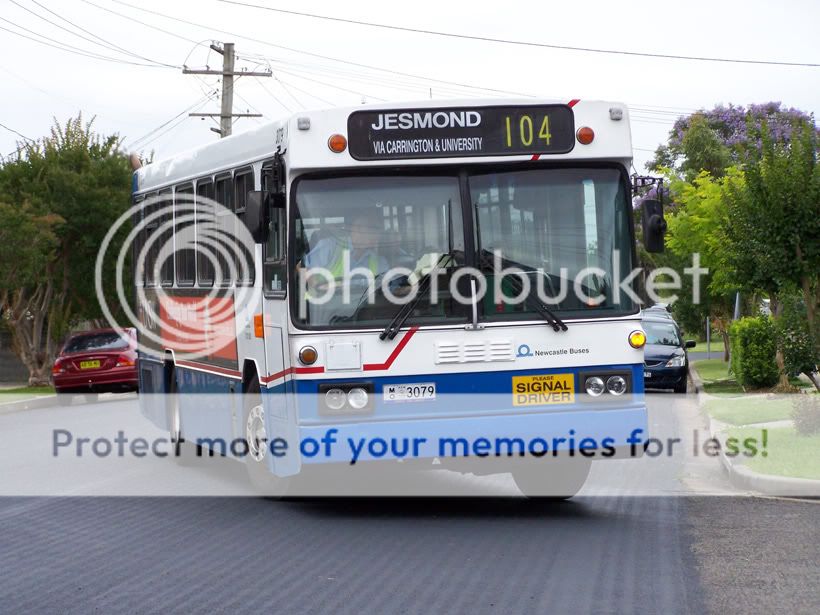The first Government bus service in Newcastle in 1935 was Route 1 from Tighes Hill to Mayfield West, it was later renumbered to Route 101 and diverted via Mounter Street, Mayfield East. Route 101 survived until 2002 with the Mayfield East section replaced by Route 104. Route 104 was removed from Mounter Street three days after this photo was taken here on 26 November 2008. 3079 was transferred to Sydney earlier this year.