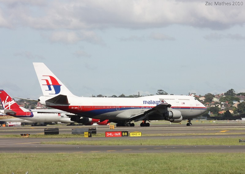 Malaysian 747-400 9M-MPO arrives on 34L