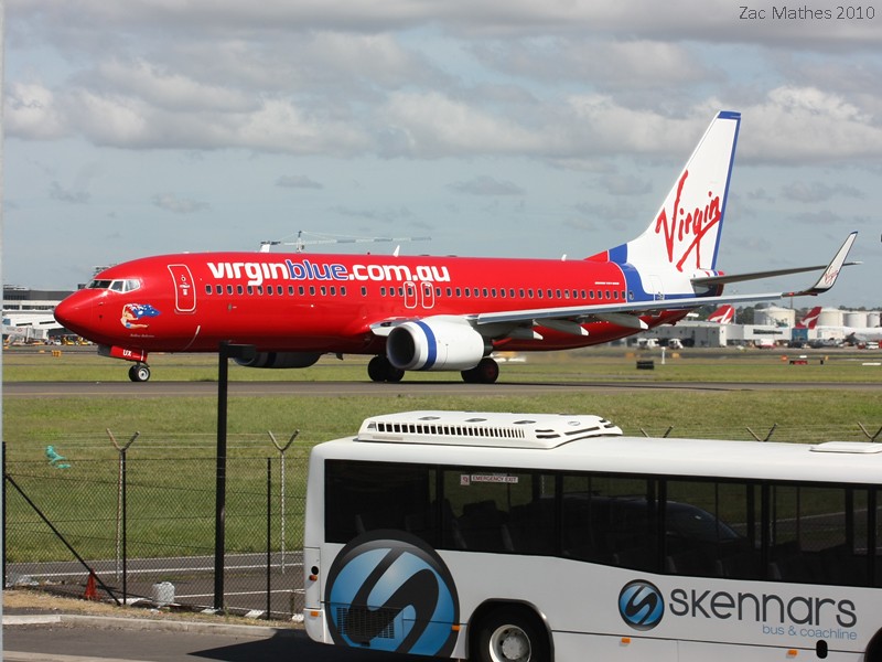 Virgin Blue 737-800 VH-VUX 'Ballina Ballerina' is seen taxiing to runway 34R for another domestic flight.