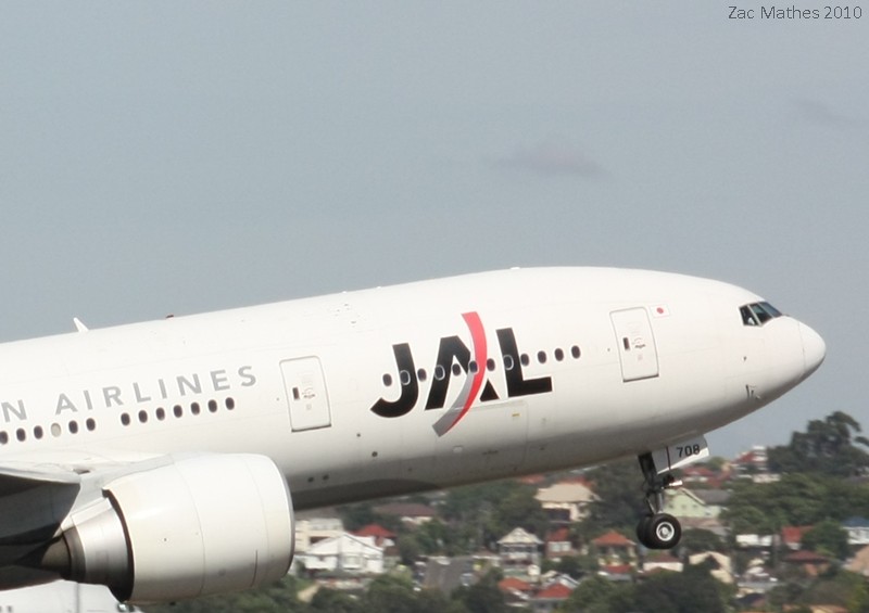 Japan Airlines Boeing 777-200ER JA708J is seen rotating from 34L for flight JO772 to Tokyo.