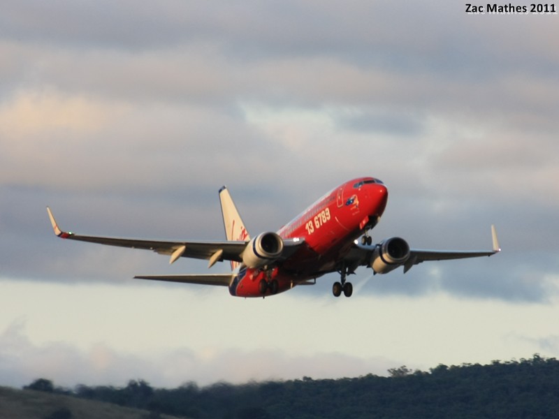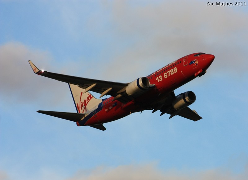 Virgin Blue 737-700 VH-VBJ 'Perth Princess' is seen rotating and climbing out for a flight to Melbourne.