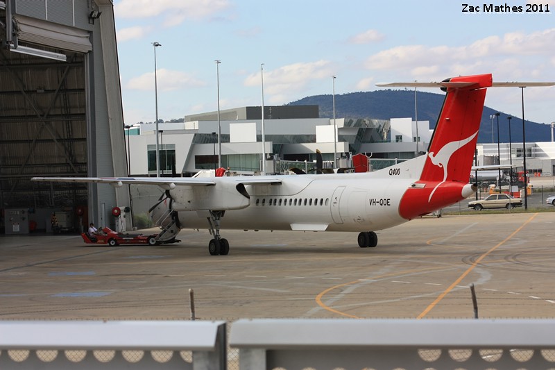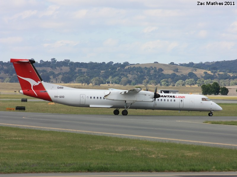 Qantaslink Dash 8-Q400 VH-QOD is seen awaiting clearance to enter the runway for a flight to Sydney.