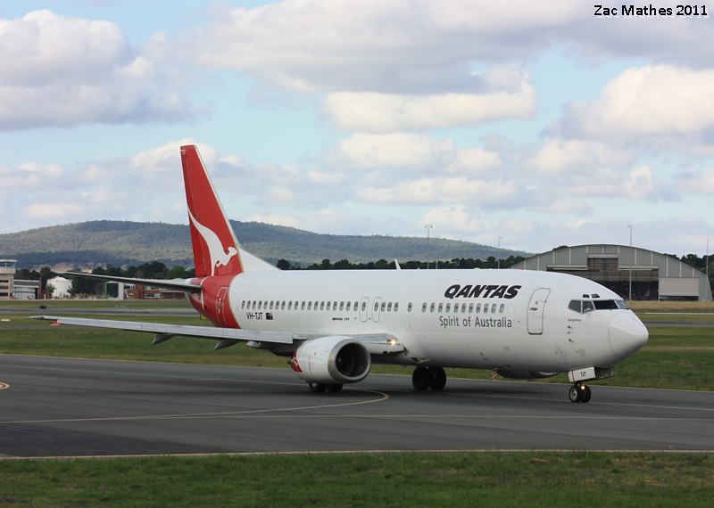 VH-TJH "Falcon" preparing to takeoff. This was the Qantas aircraft that experienced a rapid decompression near Adelaide recently.